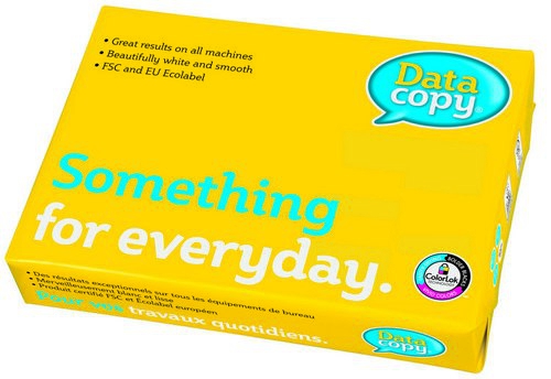 Data Copy Papier ist ein erstklassiges Allroundpapier, für alle Anforderung im modernen Büro. Flexibel und zuverlässig auf allen Geräten, für makellose Drucke. Der richtige Partner für Ihren Erfolg im Büro. Jeden Tag. Gemäß ISO 9706 behält Data Copy sein frisches Aussehen auch im hohem Alter. Kein Runzeln, kein Ergrauen, versprochen! Und Obendrein lassen sich die neunen Kartons besonders händeschonend öffnen. Was für ein Papier. Genial einfach!