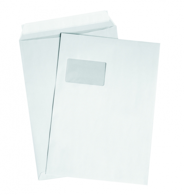 Versandtaschen DIN C4, weiß, mit Fenster, HK, 120g/qm