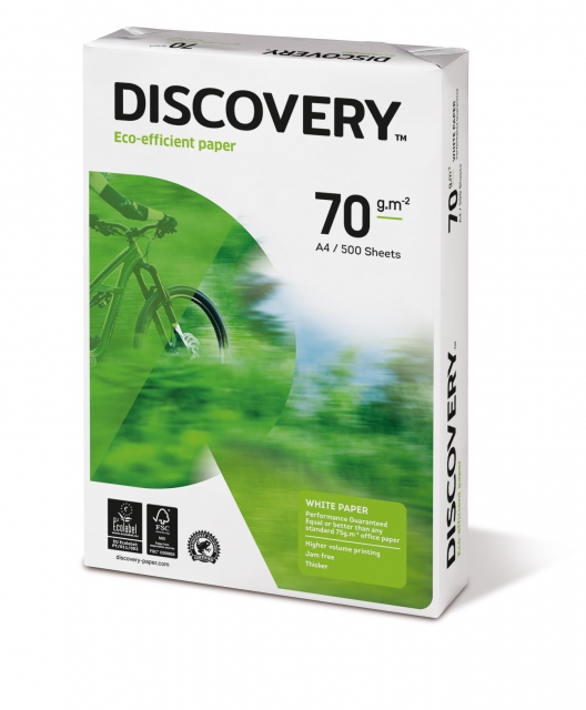 Discovery Papier ist aufgrund seines hohen Volumens mit einem herkömmlichen 80g/qm Papier vergleichbar. Es garantiert eine gute Laufeigenschaft auf allen Bürogeräten ( Inkjet / Laser / Fax / Copy ). Durch das reduzierte Flächengewicht werden weniger Ressourcen für die Herstellung von Discovery verwendet.