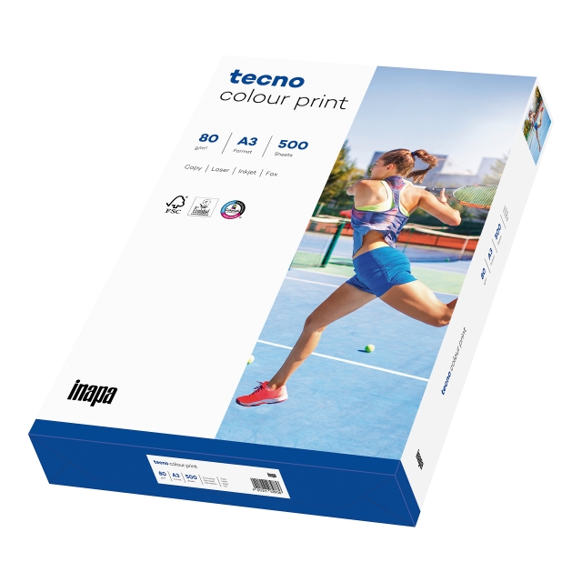 Das Spezialpapier inapa tecno colour print laser wurde in enger Zusammenarbeit mit den Geräteherstellern entwickelt, welches für hoch auflösende Vollfarbanwendungen auf allen Farblaserdruckern und Farbkopierern geeignet ist. Die superglatte Oberfläche garantiert kontrastreiche Ausdrucke bei gleichzeitig höchster Farb- und Detailgenauigkeit, insbesondere auch bei Halbtönen.