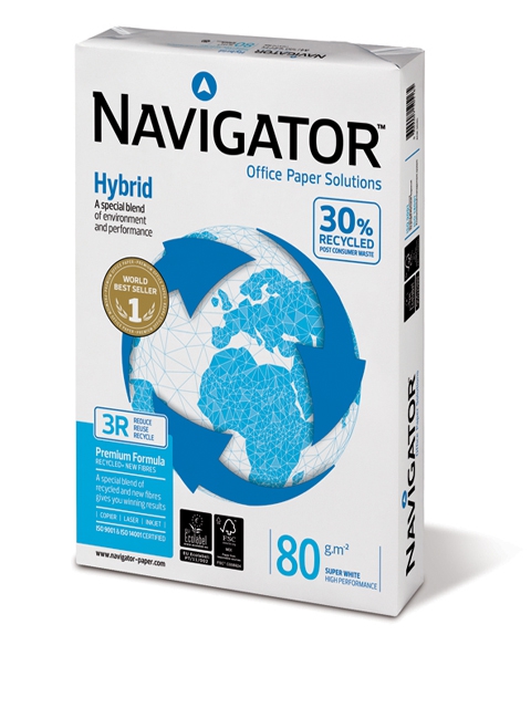 Navigator Hybrid Papier ist das ideale Multifunktions-Kopierpapier für umweltbewusste Verbraucher. Es besteht zu 30% aus recycleten Fasern. Der für die Herstellung verwendete Eukalyptus-Globulus Zellstoff stammt aus auropäischer Produktion. Es ist ein sehr schnell nachwachsendet Rohstoff, aus dem bei gleichen Rohstoffeinsatz eine größere Menge Papier hergestellt werden kann.