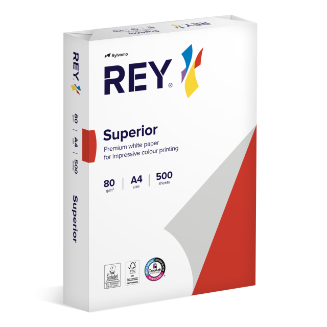 Rey Superior kann beidseitg bedruckt werden, außerdem sorgt der hohe Weißegrad des Papiers für eine präzise Farbwiedergabe. Mit der EU-Umweltblume ausgezeichnet ist Rey Superior eine umweltverträgliche Lösung, wenn optimale Ergebnisse auf Laser- und Inkjetdruckern gefragt sind.