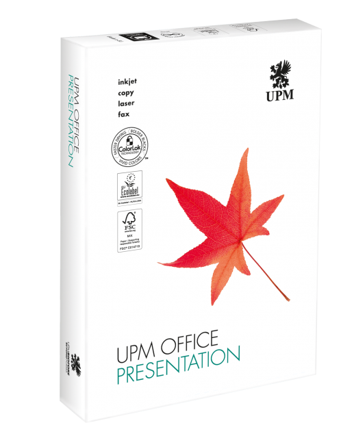 UPM Office Presentation wird aus nachhaltig bewirtschafteten Wäldern hergestellt und ist FSC®-zertifiziert, sowie PEFC zertifiziert. Des Weiteren ist das Papier mit der ColorLok Engine zertifziert, welches dem Produkt lebendigere Farben verleiht.